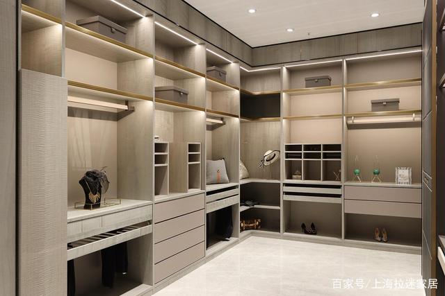 比如拉迷定制衣柜的標配是18MM柜體板,9MM背板,開門厚度為18MM,配拉迷阻尼鉸鏈和標價48元開門拉手,開門柜深度最多550MM(不含門),移門柜深度可以做650MM(含門),柜體顏色可選生態板陶瓷白,布拉格灰,巴比倫巖,多尼亞巖,原木黃,新胡桃木,白布紋。衣桿、抽屜、燈帶、自彈器或拉直器等五金,價格都是另外計算哦~