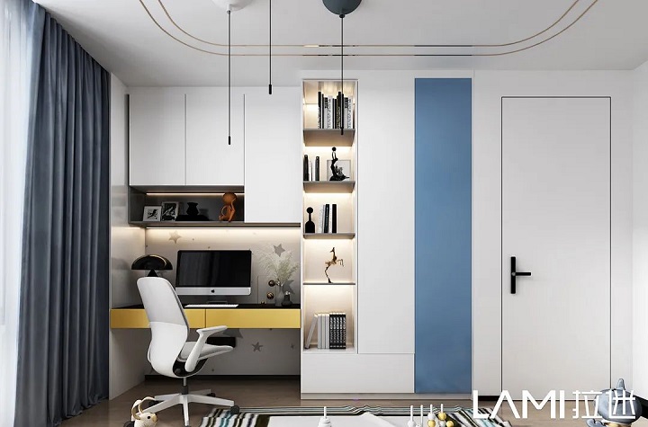 拉迷一直致力于兒童房空間定制的設(shè)計研發(fā),兒童房與其它空間有所不同的是,它對色彩、燈光、布局和板材等諸多細(xì)節(jié)有挑剔的要求,而且從小學(xué)開始,小朋友的寫字桌永遠(yuǎn)堆滿了東西——儲物和學(xué)習(xí)空間混在一起,小朋友還經(jīng)常理直氣壯弄不明白——既然明天還要用,今天為什么還要收起來?