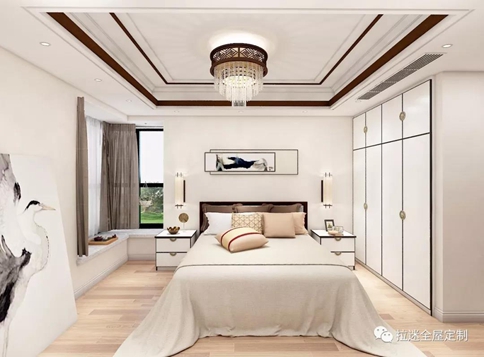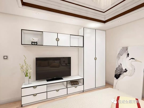 臥室中,床頭柜、衣柜、電視柜都是方方正正的設計,讓臥室不僅明亮寬敞同時更顯整齊,有條不紊。
