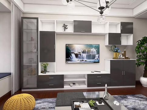 我們可以根據空間的大小來選擇不同的組合方式。如果房間寬敞,就可以采用占據整面墻的電視柜以突出整體感;如果空間過于狹長,建議采用"山"字形或"品"字形的組合電視柜,這樣可以讓空間錯落有致,弱化狹長空間帶來的局促感。