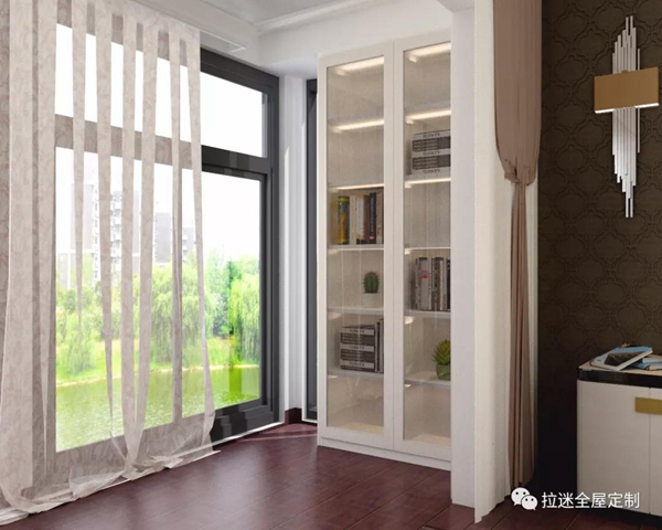 所以,陽臺書柜的裝修時,要保證陽臺的密封性,可以在陽臺上安置布簾,以避免陽光長期直接照射書柜。