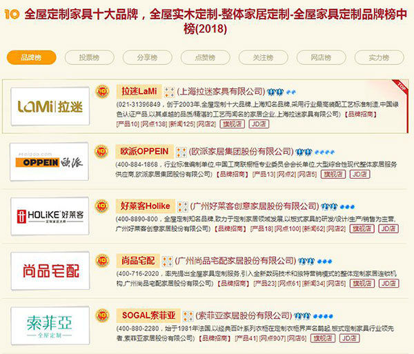 這5家是目前全屋定制行業里面的佼佼者,不管是從行業口碑還是產品知名度都是相當不錯的。全屋定制品牌的最新排名點擊了解