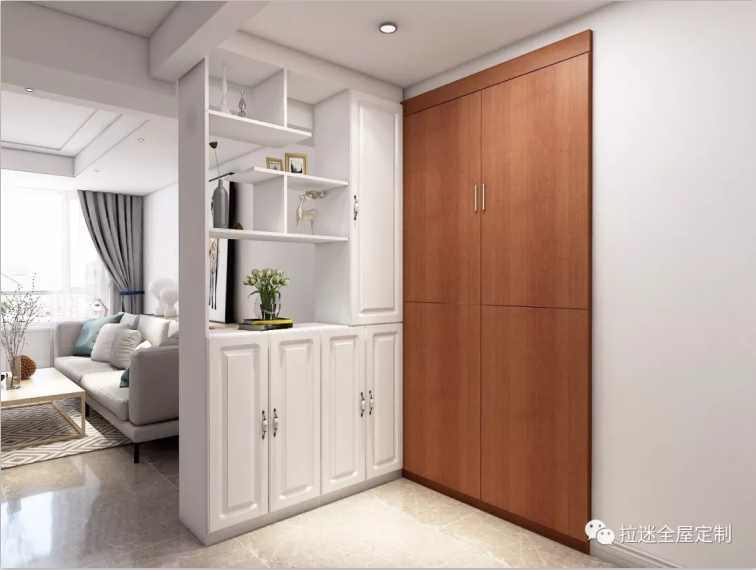 而玄關作為入戶第一眼看到的空間,決定著我們進入門后的情緒感受,所以玄關隔斷的顏色需配合整體配色。