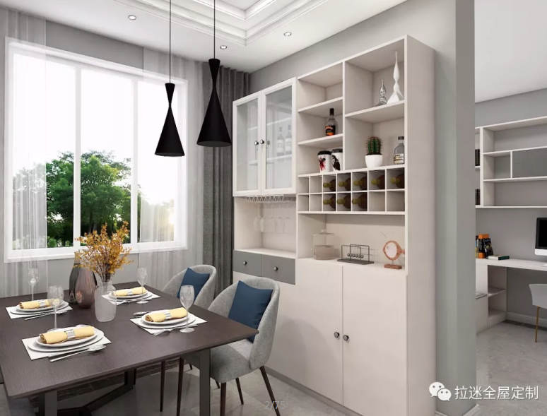 需要注意的是,隔斷本身也是客餐廳的視覺焦點,設計的時候要防止過高,以免影響視線并感到壓抑~