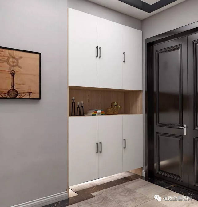 中間部分采用了鏤空設計,用綠植、香薰、相框、嵌入式燈帶等凸顯裝飾性能,是非常實用的選擇,讓每天進出家門的你都有一份好心情。