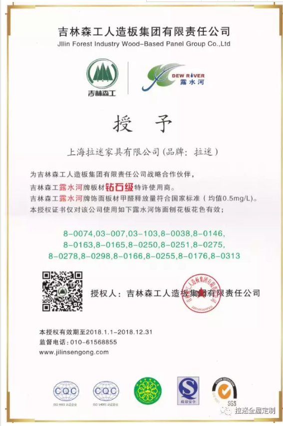 拉迷與吉林森工合作,成為吉林森工的鉆石級戰略合作伙伴,板材板材的甲醛釋放量遠遠低于國家E1級環保標準,達到了≤0.5mg/L的E0級環保水平。