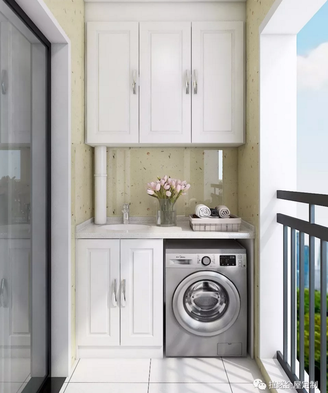 不影響晾衣服的情況下,陽臺改造成洗衣臺是最不費力氣,也是最方便的方式。在陽臺加裝一個洗衣臺,作用比想象中多。