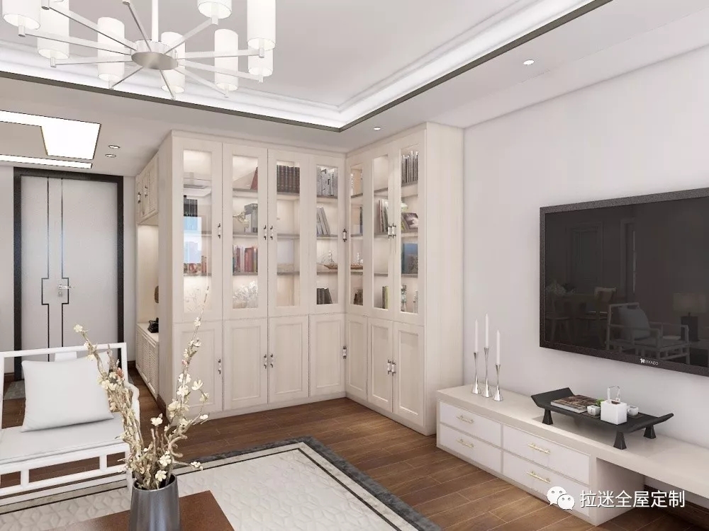 既然稱之為柜,收納的功能也是必不可少的,以上圍繞的主要的是展示與裝飾的功能,當裝飾柜要展現自己收納時,既可以根據空間布局以量體裁衣的方式出現。