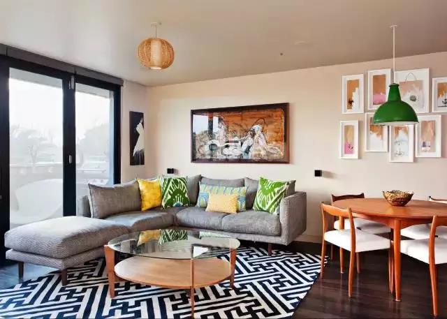 用漂亮的配件來為空間添加趣味性,著重空間的配色,可選擇同色調(diào)的物品裝點。亮色的靠枕裝扮了沙發(fā),漂亮的圓碗則將注意力集中到咖啡桌上。