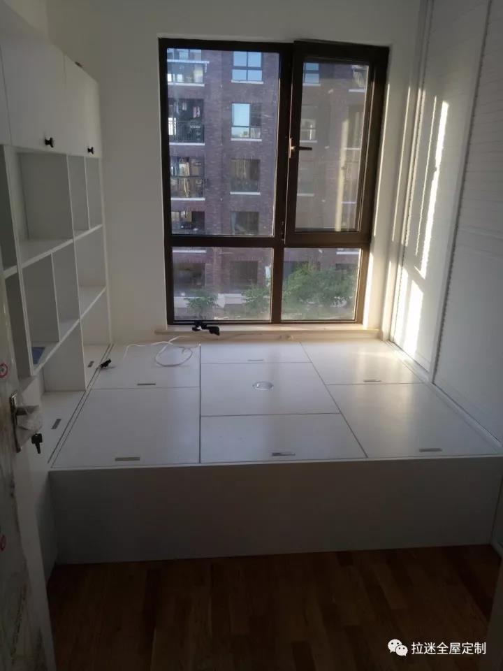安裝好的榻榻米就像一個加長版的飄窗,躺在上面就和窗戶平齊,看得著實心動。就這樣在午后或者深夜,靜靜地躺在這里,曬著陽光或者月光,享受一段安靜的時光,那該是多么愜意啊!