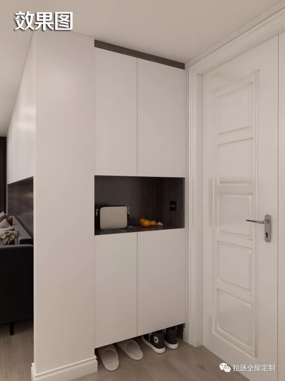 上下兩個柜體分別可以當做儲物柜和鞋柜,中間的空檔可以隨手放置一些小物件,十分便捷。