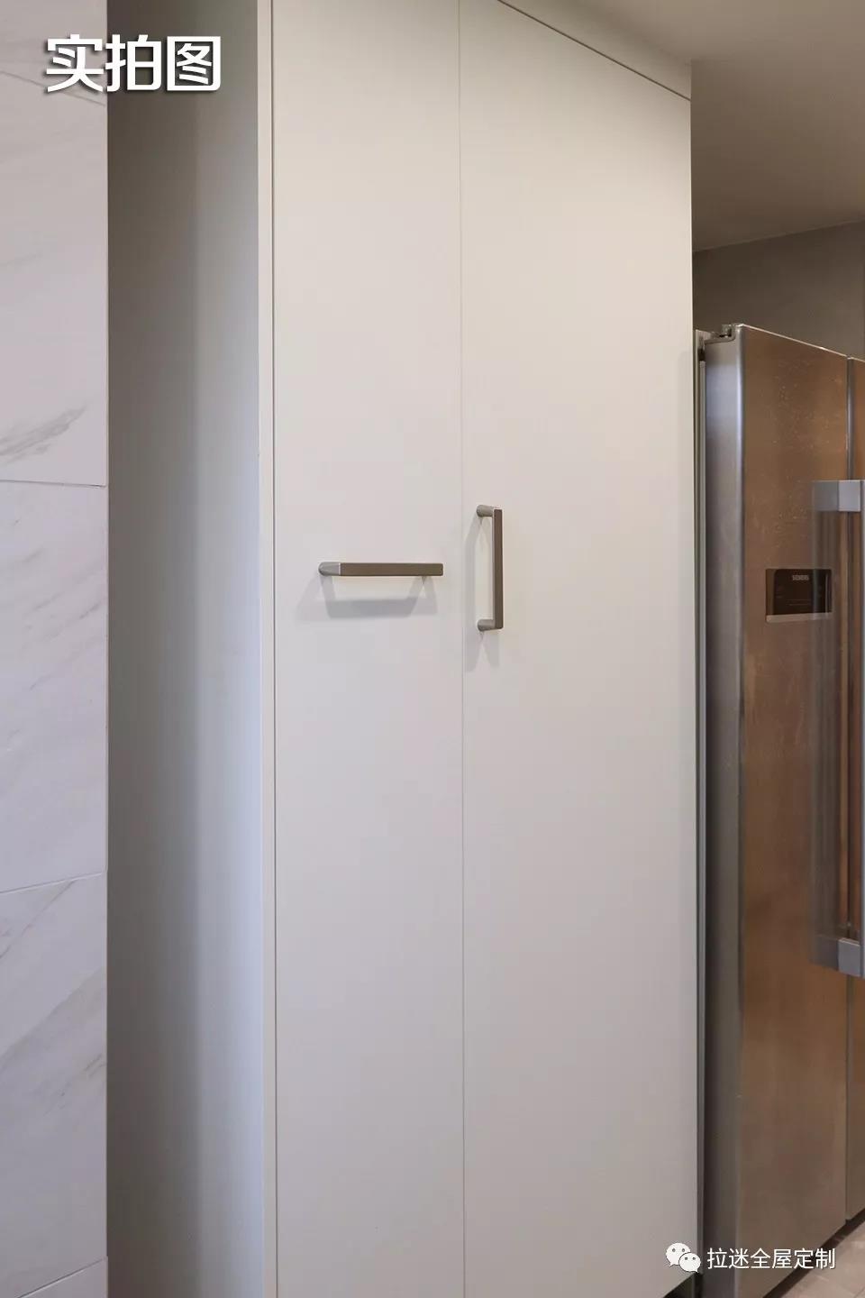 廚房中也是做了一個容量十分可觀的儲物柜,放置一些不用放在冰箱,可以常溫存放的物品。