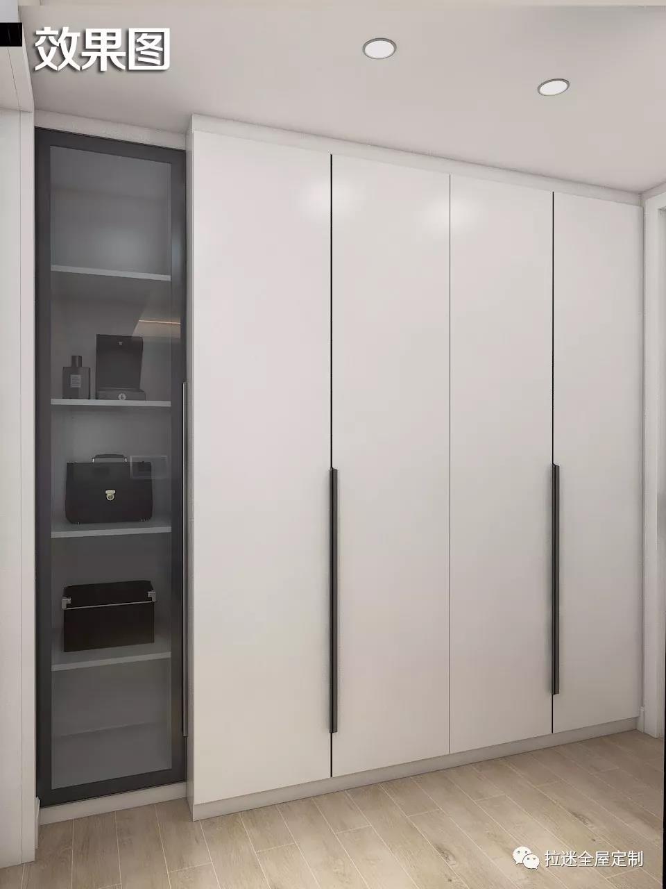 這是一款儲物柜,旦看上去十分像護墻板,得益于它沒有安裝把手,而是采用了自彈器作為開關。