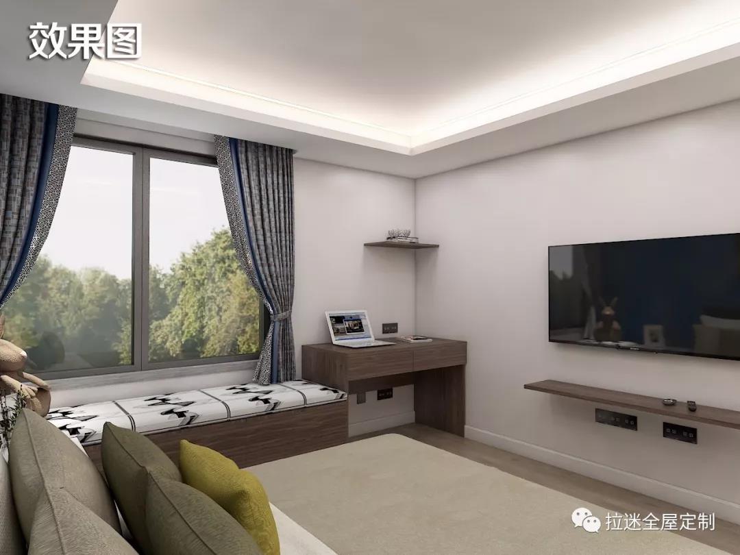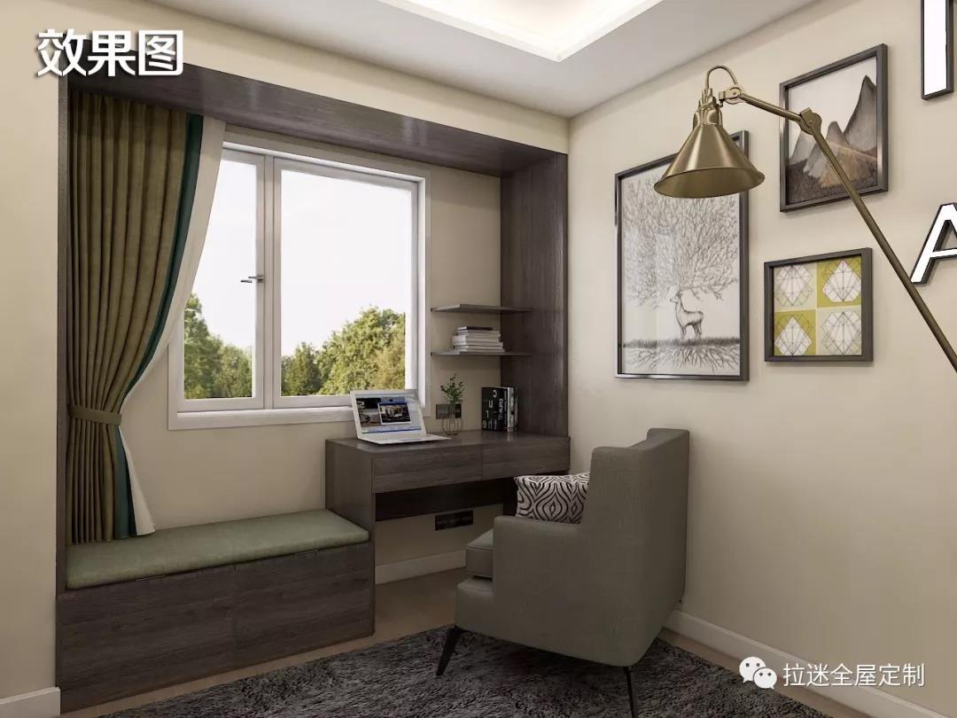 放置一個小書桌,臨窗再做一個飄窗柜......看看窗外的風景,聊聊生活的趣事,二人世界就是這般悠閑自在。