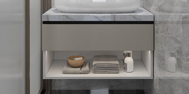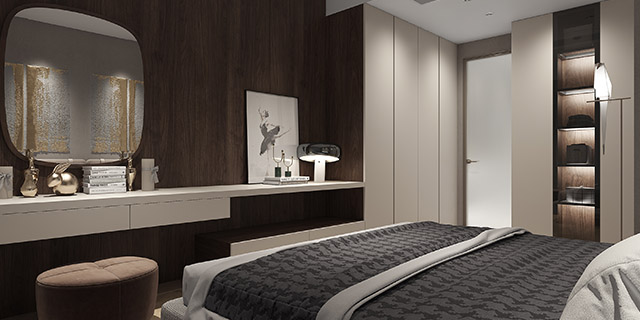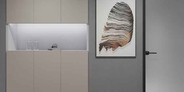 莫爾德與沙漠灰的質感提升了整個飄窗柜高級感。
