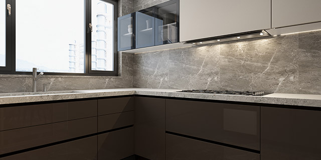 墻面的大理石紋理瓷磚更顯得大氣整潔。