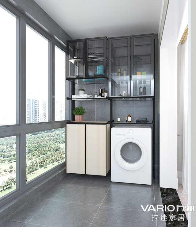 另一側裝上一個收納力max的陽臺柜,雜物就能井井有條地分類放置啦。